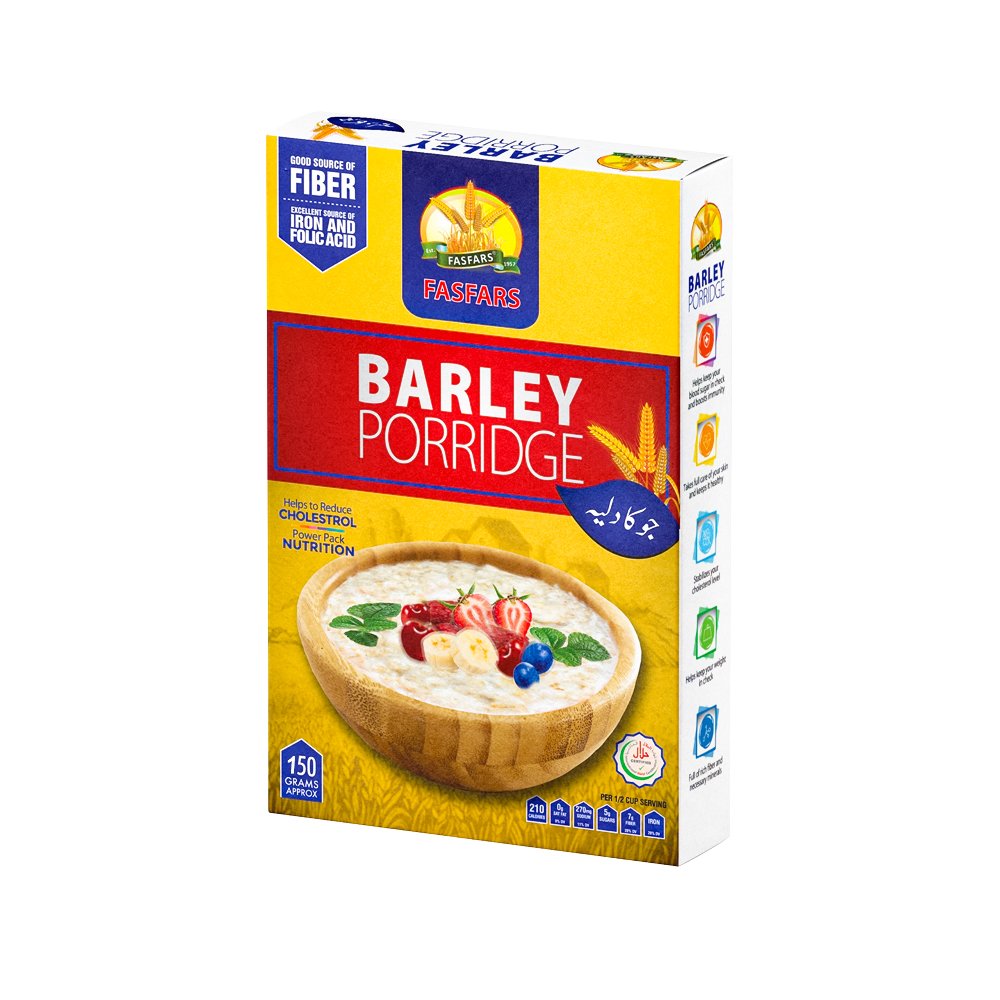 Fasfars Barley Porridge 150gm is a power-packed meal made with meticulously selected barley grains for a nutritious and healthy breakfast option. It is a good source of soluble fiber and an excellent source of iron and folic acid. Packed with proteins, calcium, and dietary fiber, a bowl of this porridge becomes a booster of energy that lasts throughout the day. It does not include saturated fat, trans fat, and cholesterol, lowering the risk of heart disease. This porridge is also very low in sugar, making it an ideal meal for those trying to cut back. The smooth and creamy texture of this porridge, filled with easily digestible healthy nutrients, promotes a healthy, happy, and energetic lifestyle.