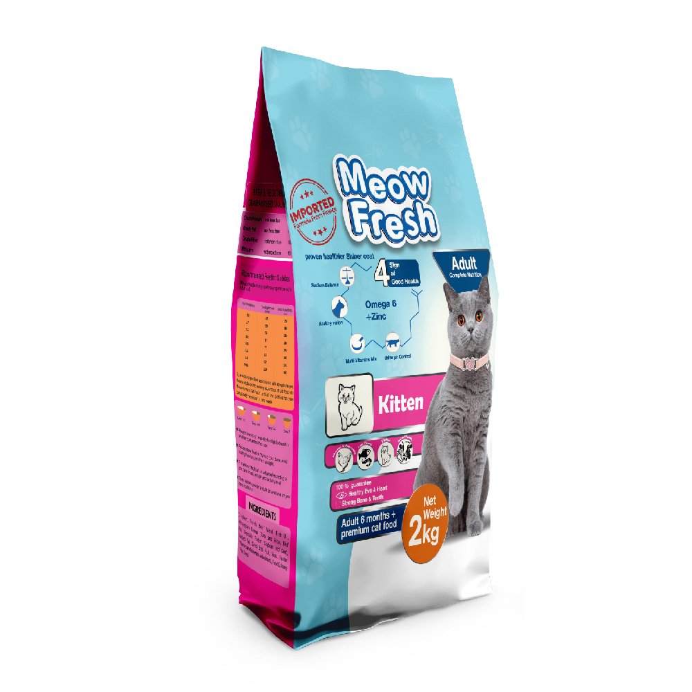 Meow Fresh Kitten 2kg is a premium cat food made especially for kittens. It has a delicious combination of premium seafood flavors that makes your cat purr with joy. Each bite is packed with the mouthwatering flavor of the ocean, giving your beloved pet a wholesome and well-balanced meal. The food is formulated to maintain the general health and vitality of your cat, making sure they get the essential nutrients they require to thrive. Giving your cat food that is both; tasty and nourishing can encourage happy and healthy living.
